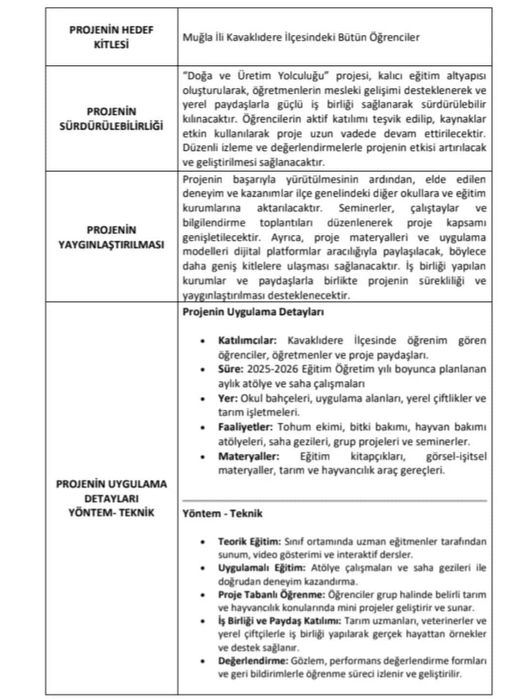 Kavaklıdere İlçe Milli Eğitim Müdürlüğü koordinasyonunda ve Kavaklıdere İlçe Tarım ve Orman Müdürlüğü birlikteliğinde her ay farklı bir etkinlikle hayat bulacak "Doğa ve Üretim Yolculuğu" projesi başlıyor. 24 Eylül 2025 Çarşamba günü saat 09.30 da Çatak yolu üzerinde bulunan arazi üzerinde gerçekleştirilecek etkinlikte; Çamlıbel İlkokulu, Çatak İlkokulu, Menteşe İlkokulu ve Menteşe Ortaokulu ögrencilerimize yönelik Kavaklıdere İlçe Tarım ve Orman Müdürlüğü yetkililieri tarafından "Çilek Yetiştiriciliği" konulu teorik ve uygulamalı eğitim verilecektir. Bu yolculukta öğrencilerimizin elinin toprakla buluşması, doğayı tanıması, üretim süreçlerine aktif katılım sağlaması ve çevre bilinciyle donanması amaçlanmaktadır.